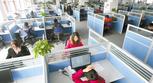 數(shù)百個(gè)人發(fā)出不同的聲音,使得整個(gè)房間都浸在一個(gè)音頻的嘈雜環(huán)境里。每一個(gè)客服代表都在說話,各種各樣的問題,他們都會(huì)在電腦上找到專業(yè)的解答。電話太多,客服與客服之間,幾乎沒有交頭接耳的討論和接送文件的交流。
