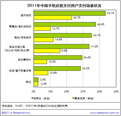 艾瑞咨詢:中國手機(jī)近程支付場(chǎng)景主要為超市和便利店