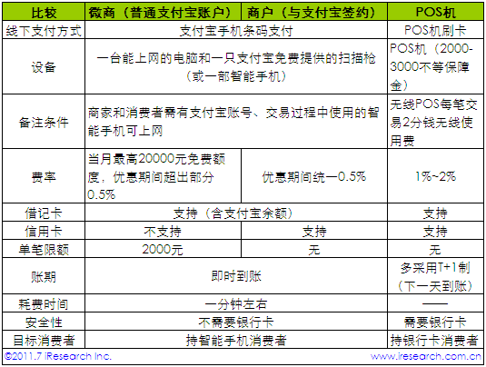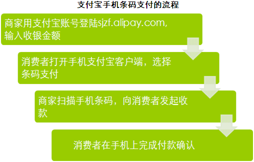 2011年7月1日上午,支付寶在2011廣州網(wǎng)貨會上推出手機支付產(chǎn)品——條碼支付(Barcode Pay)。在支付過程中使用這種產(chǎn)品,消費者與商家之間只有掃描條碼的接觸,不需要出示任何銀行卡。該支付方式主要針對現(xiàn)實中的微小商戶(如小賣店、便利店),為其提供低成本收款服務。