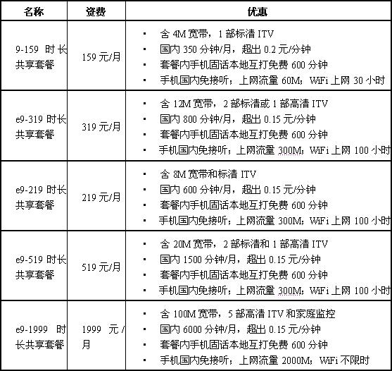 注:中國(guó)電信固定電話用戶(未安裝中國(guó)電信寬帶):在時(shí)尚包和全能包收費(fèi)基礎(chǔ)上另增加10元/月使用費(fèi)。