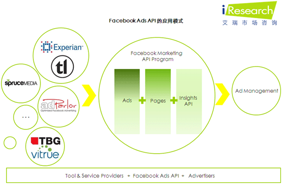 iResearch艾瑞咨詢整理Insidefacebook最新行業(yè)動態(tài)時發(fā)現(xiàn),F(xiàn)acebook于2011年8月1日正式宣布開放廣告接口(Ads API)應(yīng)用服務(wù),通過在該接口上投放第三方的高效廣告管理工具,廣告主甚至可以保證數(shù)百萬的復(fù)雜媒體營銷計劃正常運營并實現(xiàn)廣告管理的高效優(yōu)化。到目前為止,F(xiàn)acebook只為少數(shù)有限的第三方廣告管理工具供應(yīng)商提供了準(zhǔn)入接口,包括Techlightenment(近日被Experian收購)、TBG Digital(與Vitrue達成協(xié)作)、Spruce Media、AdParlor等。此外,F(xiàn)acebook也建立了廣告接口營銷項目計劃,通過收取廣告、頁面、廣告接口洞察等相關(guān)費用來實現(xiàn)盈利。隨著更多的第三方工具與服務(wù)供應(yīng)商進入Ads API市場,越來越多的當(dāng)?shù)匦⌒蛷V告主也有望享受低成本的廣告優(yōu)化管理服務(wù)。