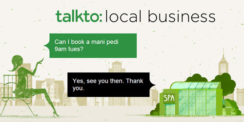 這一切是怎樣實現(xiàn)的呢?TalkTo通過短信與商家溝通。用戶可以通過web應(yīng)用在TalkTo目錄中搜索需要的服務(wù),輸入商家的詳細地址或者大概位置,TalkTo就可以確保商家看到用戶的短信。TalkTo用戶可以向商家提出問題和意見,或直接預定服務(wù)。“這一切就像和朋友發(fā)短信一樣簡單!