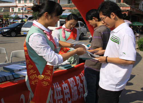 “你們服務真周到、真方便,讓我們在散步的同時就可以了解到有關電力法規(guī)、服務項目等知識,太好了。”10月22日,在福建長汀三元閣廣場,正在散步的張女士滿意地贊揚了長汀供電服務宣傳隊的姑娘們。