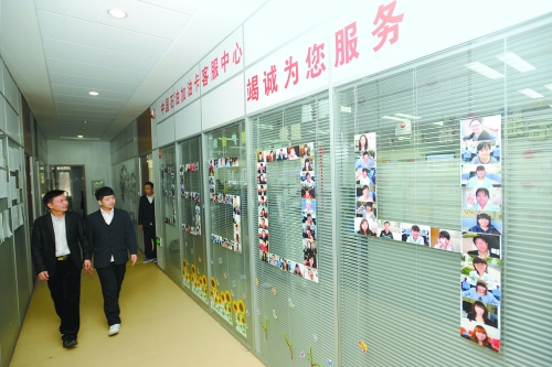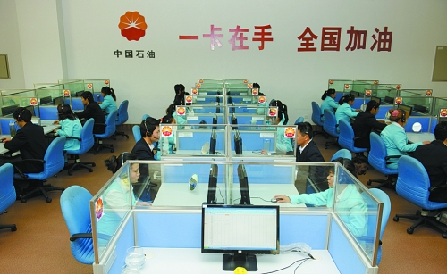 推開(kāi)中國(guó)石油加油卡客服中心的大門(mén),50個(gè)接聽(tīng)坐席進(jìn)入眼簾。身著白色上衣、藍(lán)色馬甲的客服人員忙碌地接聽(tīng)著各地客戶(hù)打來(lái)的電話。在這個(gè)中心的西墻上“一卡在手,全國(guó)加油”八個(gè)大字非常醒目。
