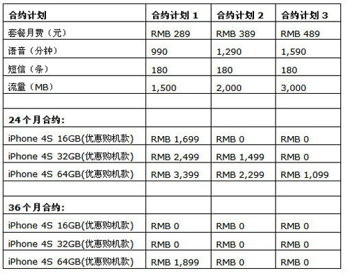 圖:中國電信iPhone 4S合約計劃