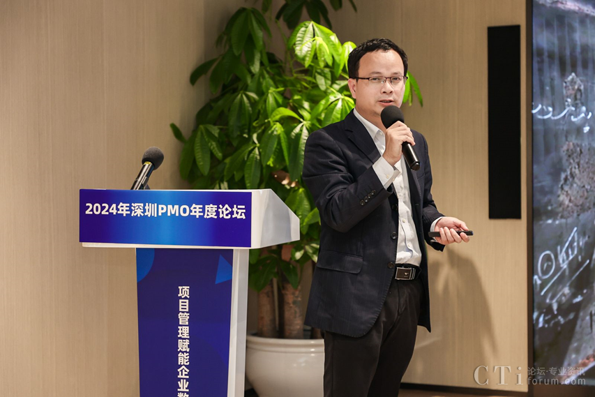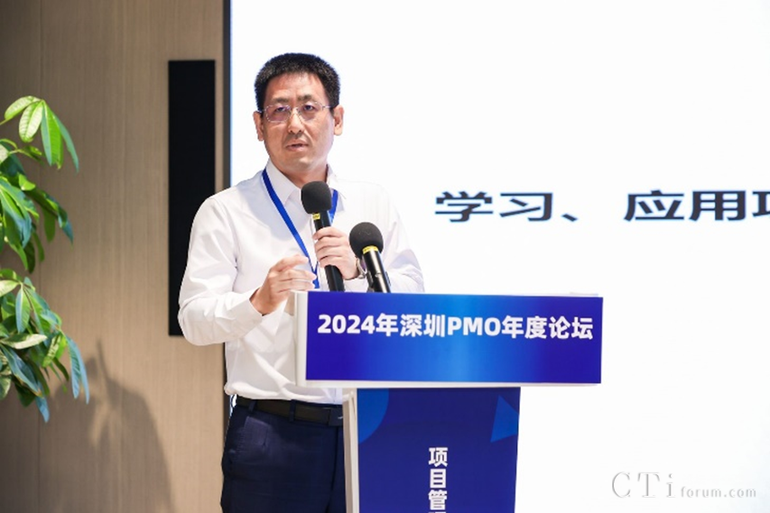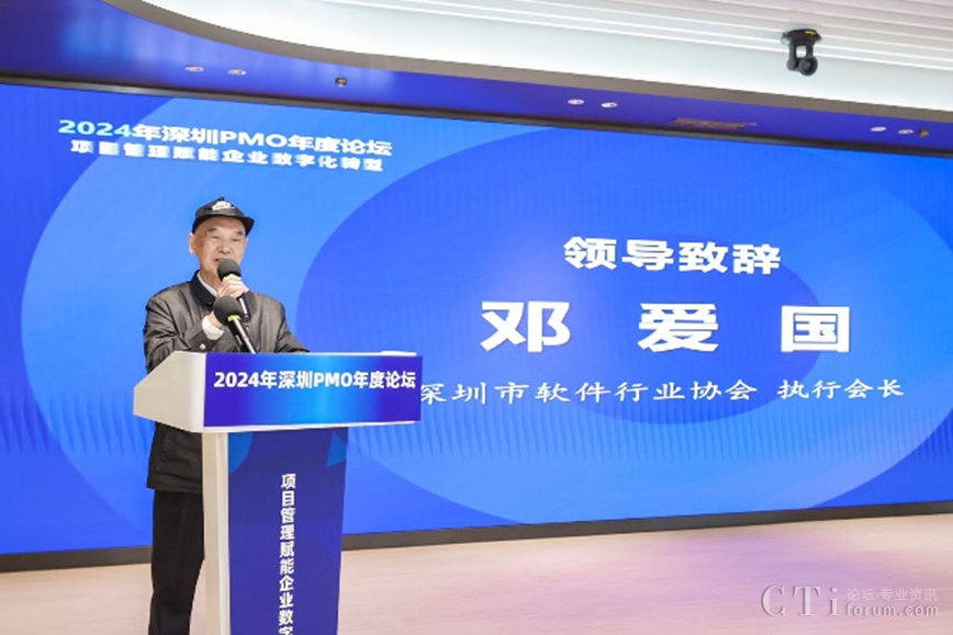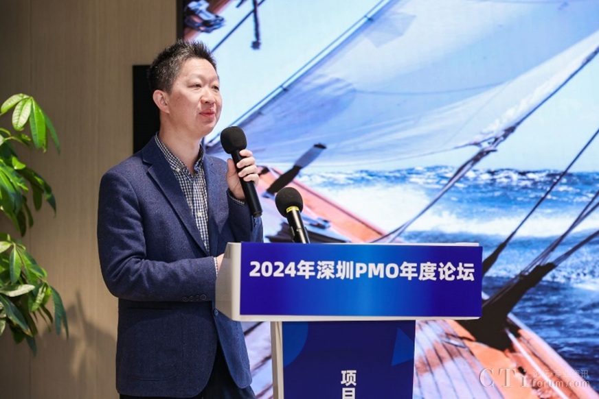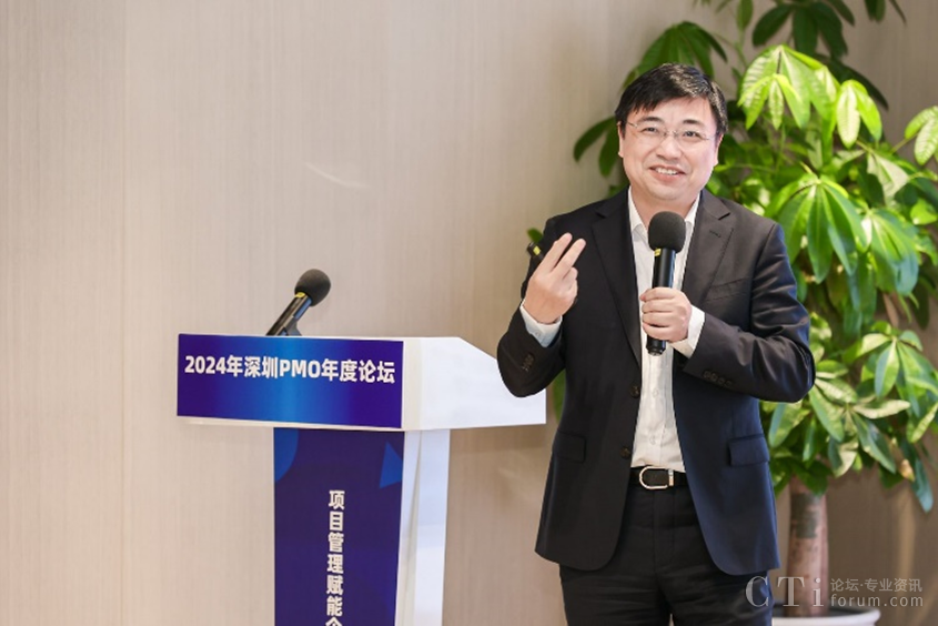 深圳市軟件行業(yè)協(xié)會執(zhí)行會長鄧愛國發(fā)表了熱情洋溢的致辭。他強調了PMO在數(shù)字化轉型中的關鍵作用,并表達了對與會者們的熱烈歡迎和對論壇的殷切期望。他表示,PMO是項目管理中的重要角色,承擔著承上啟下的作用,對于企業(yè)數(shù)字化轉型的成功至關重要。