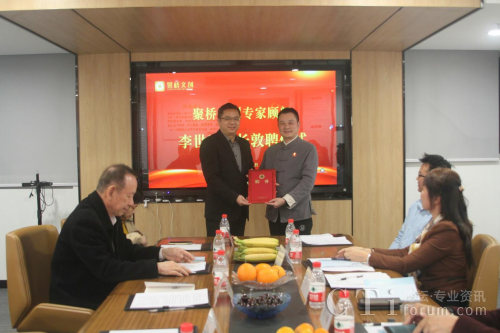 (圖:聚橋文創(chuàng)總經(jīng)理鄒橋華向廣東省傳統(tǒng)文化促進(jìn)會會長李世玉頒發(fā)顧問聘書)