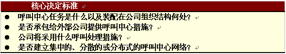 。。當一個公司考慮將呼叫中心納入其整體服務(wù)策略的時候,在具體步驟開始以前必須作一些基本的決定。重要的是評估該公司當前的服務(wù)策略并考慮可能的選擇范圍。本章簡要總結(jié)了建立呼叫中心可能發(fā)生的一些典型的運營管理問題。