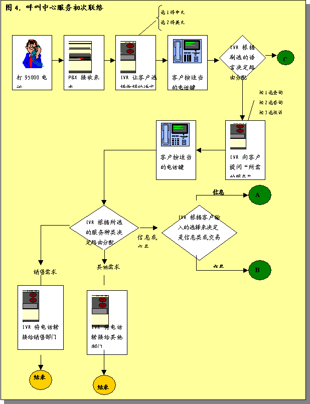 圖4詳細(xì)說明了呼叫中心服務(wù)初次處理呼叫的過程。根據(jù)圖標(biāo)的內(nèi)容,將立即撥號呼叫者: