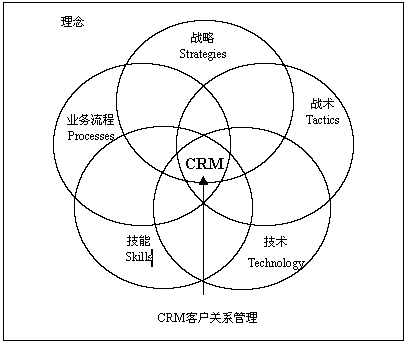 以上各種定義對“客戶關系”的概念理解是明確、一致的,即“客戶關系”是客戶與企業(yè)發(fā)生的所有關系的綜合,是公司與客戶之間建立的一種相互有益的關系。綜合所有CRM的定義,我們可以將其理解為理念、戰(zhàn)略、技術三個層面,正確的戰(zhàn)略、策略是CRM實施的指導,信息系統(tǒng)、IT技術是CRM成功實施的手段和方法。其實,企業(yè)實施CRM主要有6個重要領域:理念、戰(zhàn)略、戰(zhàn)術、技術、技能、業(yè)務過程。其中,理念是CRM成功的關鍵,它是CRM實施應用的基礎和土壤。