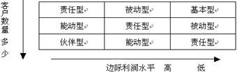 需要指出的是這5種程度的客戶關系類型并不是一個簡單的從優(yōu)到劣的順序,企業(yè)所能采用的客戶關系的類型一般是由它的產(chǎn)品以及客戶決定的, 比如寶潔公司它的洗發(fā)水、洗衣粉的客戶之間是一種被動性的關系:寶潔設立客戶抱怨處理機構,處理客戶投訴,改進產(chǎn)品;但是寶潔和沃爾瑪特之間卻可以建立互惠互利的伙伴性關系?铺乩崭鶕(jù)企業(yè)的客戶數(shù)量以及企業(yè)產(chǎn)品的邊際利潤水平提供了一個表格幫助企業(yè)選擇自己和是的客戶關系類型。