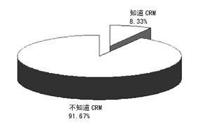 本次問卷調(diào)查共有2461個(gè)有效樣本,其中知道CRM的有220份,占8.33%,不知道的有2421份,占91.67%。這說明,從國(guó)外引入到現(xiàn)在,CRM在我國(guó)還遠(yuǎn)未普及。