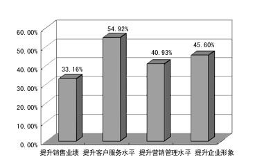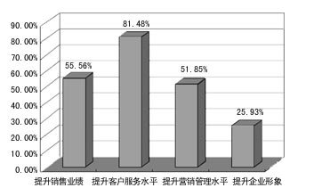 從結(jié)果上看,企業(yè)實(shí)施的最大動(dòng)力是“提升客戶服務(wù)水平”。這說明,企業(yè)對(duì)CRM的理解還僅僅停留在初級(jí)階段,尚沒有充分認(rèn)識(shí)到對(duì)企業(yè)提升銷售業(yè)績(jī)、營(yíng)銷管理水平有著重要作用。這其實(shí)也反應(yīng)了我國(guó)企業(yè)目前的管理水平。