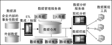 從圖中可以看出,數(shù)據(jù)倉庫是BI的基礎(chǔ),聯(lián)系分析處理和數(shù)據(jù)挖掘是數(shù)據(jù)倉庫上的兩類不同目的的數(shù)據(jù)增值操作。聯(lián)機分析工具是數(shù)據(jù)匯總/聚集工具,它提供切片、切塊、下鉆、上卷和旋轉(zhuǎn)等數(shù)據(jù)分析操作,簡化用戶的數(shù)據(jù)分析工作。數(shù)據(jù)挖掘支持知識發(fā)現(xiàn),包括找出隱藏的模式和關(guān)聯(lián),構(gòu)造分析模型,進(jìn)行分類和預(yù)測,并用可視化工具提供挖掘結(jié)果。數(shù)據(jù)分析工具和數(shù)據(jù)挖掘工具可以配合使用,由數(shù)據(jù)分析為數(shù)據(jù)挖掘提供預(yù)期的挖掘?qū)ο蠛湍繕?biāo),避免挖掘的盲目性。可以說,數(shù)據(jù)倉庫、OLAP和數(shù)據(jù)挖掘技術(shù)是企業(yè)BI的三大支柱。