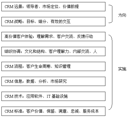 企業(yè)必須意識(shí)到作為一個(gè)企業(yè)戰(zhàn)略,CRM將要"管理變革"而不是"變革管理"。CRM戰(zhàn)略是指企業(yè)為了優(yōu)化管理客戶資源、最大化客戶價(jià)值而制定的受到管理的、并得到信息技術(shù)支撐的長遠(yuǎn)規(guī)劃和長遠(yuǎn)目標(biāo)。戰(zhàn)略目標(biāo)的實(shí)現(xiàn)需要所有全體員工和高層管理者的參與和支持,各個(gè)部門領(lǐng)導(dǎo)的參與對(duì)于整體實(shí)施成功非常關(guān)鍵。這是實(shí)施CRM的一個(gè)基本原則。