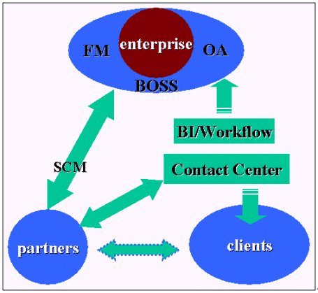 根據(jù)上面的分析SCN新一代客戶聯(lián)絡(luò)中心建成后將具備較強(qiáng)的雙向交互能力,為了更好的統(tǒng)一和完善整個(gè)客戶關(guān)系管理框架,我們希望盡可能的將企業(yè)內(nèi)外的所有溝通都綜合到一個(gè)平臺(tái),他融合了企業(yè)的主頁,企業(yè)的客戶聯(lián)絡(luò)中心,企業(yè)的內(nèi)部辦公自動(dòng)化網(wǎng),企業(yè)資源管理系統(tǒng)等這樣客戶只需要通過這樣的一個(gè)平臺(tái)便可解決所有問題,或者說是客戶、員工等企業(yè)相關(guān)的任何個(gè)體之間的交流可以有多個(gè)表現(xiàn)形式如電話,電郵,網(wǎng)絡(luò),辦公自動(dòng)化系統(tǒng),短信等等但最終都轉(zhuǎn)移到同一個(gè)平臺(tái)上來實(shí)現(xiàn)交換。為什么需要這樣呢?只有這樣才能最好的實(shí)現(xiàn)統(tǒng)一信息。信息統(tǒng)一了,我們就可以建立客戶資訊的數(shù)據(jù)倉庫了,有了統(tǒng)一的數(shù)據(jù)信息,任何基于客戶的分析、細(xì)分都可以實(shí)現(xiàn),而客戶的任何遺留痕跡如嗜好,習(xí)慣,忠誠度,消費(fèi)意愿等等都可以方便的提取,最后通過商業(yè)智能輔助進(jìn)行客戶生命周期管理、市場(chǎng)營(yíng)銷、財(cái)務(wù)管理和戰(zhàn)略決策等。形成一個(gè)良性循環(huán)的客戶關(guān)系管理生態(tài)鏈。由于客戶關(guān)系管理將涉及到各部門之間的協(xié)調(diào)和合作,業(yè)務(wù)模式變革等眾多方面,在此不作詳細(xì)的描敘,本人將在另外的文章中專門來探討客戶關(guān)系管理中長(zhǎng)遠(yuǎn)規(guī)劃的問題。