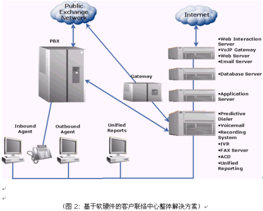 1, 電話系統(tǒng)方面: 統(tǒng)一的電話接入、語音,數(shù)據(jù)同步傳遞、坐席分組管理、來電路由管理、來電隊(duì)列管理、自動(dòng)語音服務(wù)、坐席軟電話以及可定義的統(tǒng)一消息服務(wù);