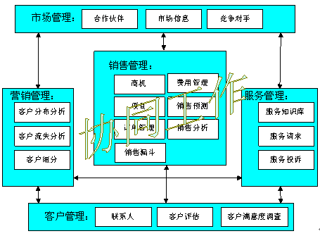 以客戶管理、銷售、服務、營銷、市場之間的協(xié)同工作(CooperativeWorking)為基礎(chǔ)目標;