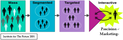 首先,互聯(lián)網(wǎng)的出現(xiàn)改變了營(yíng)銷的概念,為大規(guī)模定制創(chuàng)造了空前的機(jī)遇。隨著富裕而又有辨別能力的中產(chǎn)階級(jí)的逐漸壯大,預(yù)先營(yíng)銷的期望以及針對(duì)個(gè)人的解決方案日益成為一種標(biāo)準(zhǔn)。從記住他們的行為&偏好并為他們發(fā)送相關(guān)產(chǎn)品信息 (例如Amazon.com) …到幫助他們得到自己理想中的產(chǎn)品 (例如Dell.com,) ,CRM觀念的關(guān)鍵之處就在于為客戶提供符合他們需求的產(chǎn)品/服務(wù)而不是向他們推銷你的東西;ヂ(lián)網(wǎng)使你能夠與客戶建立學(xué)習(xí)關(guān)系,從銷售轉(zhuǎn)移到解決問(wèn)題;ヂ(lián)網(wǎng)上的CRM已經(jīng)上升到了另一個(gè)高度。