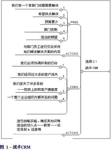 換言之,它是一種戰(zhàn)術(shù)性的還是戰(zhàn)略性的需求?許多企業(yè)喜歡在一段時(shí)間內(nèi)解決某個(gè)問(wèn)題或困難。然而這種戰(zhàn)術(shù)性的方式很難為企業(yè)帶來(lái)競(jìng)爭(zhēng)上的優(yōu)勢(shì),盡管它有可能會(huì)改善部門(mén)的效率。究竟我們要在CRM之路上走多遠(yuǎn)?想要知道答案的話可以看一下圖1。從頭開(kāi)始,問(wèn)問(wèn)自己:它是一個(gè)具有明確定義和目標(biāo)范圍的部門(mén)需求嗎?如果真是這樣,那么預(yù)算也應(yīng)該相當(dāng)有限,因?yàn)槠渌鼧I(yè)務(wù)部門(mén)決不會(huì)遷就。然而你很可能會(huì)發(fā)現(xiàn)你的部門(mén)問(wèn)題就是企業(yè)與客戶及市場(chǎng)脫離的征兆。如果情況的確如此,那么你就要好好地努力深化CRM并取得更為廣泛的支持——尤其是CEO,因?yàn)槟阌性S多關(guān)于客戶選擇的問(wèn)題要有賴(lài)于他。