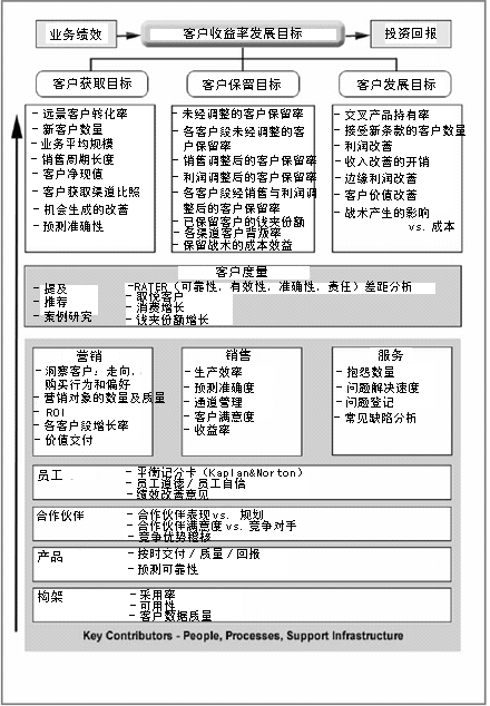 顧客收益分析,策略和發(fā)展目標(biāo),銷(xiāo)售促進(jìn)的效果,變革管理,以及利用(直接或者非直接的)渠道聯(lián)盟去建立理想的客戶價(jià)值。