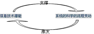 綜合之,實(shí)施CRM必須高度重視(信息)技術(shù)和流程[1]。信息技術(shù)和流程間存在互動(dòng)關(guān)系。信息技術(shù)支撐企業(yè)的流程。利用信息技術(shù)可以打破企業(yè)業(yè)務(wù)流程的重要約束條件,能夠創(chuàng)造全新的流程再設(shè)計(jì)觀點(diǎn);通過(guò)科學(xué)、系統(tǒng)的流程變動(dòng)可以使信息技術(shù)的潛力得到最大限度的發(fā)揮,同時(shí)也推動(dòng)了信息技術(shù)的發(fā)展。下圖描述了二者的關(guān)系。