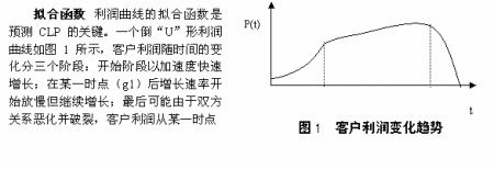客戶利潤曲線除了倒“U”形外,可能還有各種其它形狀。其它形狀CLP預(yù)測的關(guān)鍵是找到合適的客戶利潤曲線擬合函數(shù)。為此公司需要建立一個客戶利潤曲線擬合函數(shù)庫,庫中存放各種形狀實際客戶利潤曲線的擬合函數(shù)。當(dāng)客戶歷史利潤曲線不符合倒“U”形變化規(guī)律時,在庫中尋找新的擬合函數(shù)。如庫中沒有現(xiàn)成的滿足要求的擬合函數(shù),則建立新的擬合函數(shù),并加入庫中。擬合函數(shù)確定后,參照倒“U”形CLP的預(yù)測方法和步驟便不難算出當(dāng)前客戶的CLP。當(dāng)前分析型CRM系統(tǒng)具備的數(shù)據(jù)庫技術(shù)、數(shù)據(jù)挖掘技術(shù)、知識發(fā)現(xiàn)技術(shù)等有效的智能工具去識別客戶利潤曲線,進而確定擬合法中的各參數(shù),可以容易的計算出CLP。