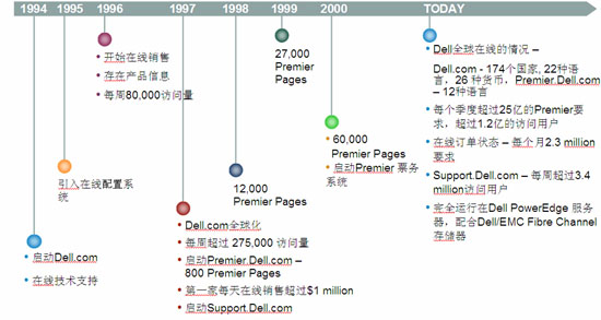 Dell從2004年開始,在中國大陸推出改服務(wù),開始的服務(wù)對象都是一些跨國公司在國內(nèi)的分支機構(gòu),到現(xiàn)在為止,已經(jīng)有1000個用戶,通過Premier下單的金額,也從開始的每月不足10萬美元,到現(xiàn)在的每月超過400萬美元。