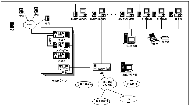 系統(tǒng)包括投訴建議處理、話路控制、秘書臺、電信業(yè)務(wù)咨詢、綜合統(tǒng)計(jì)、公告板、Web處理等業(yè)務(wù)模塊,以及系統(tǒng)用戶管理、錄音提取、基本設(shè)置、傳真管理等管理模塊,并實(shí)現(xiàn)了與97系統(tǒng)、112系統(tǒng)的互聯(lián)與資源共享。系統(tǒng)自九八年年底試運(yùn)行以來,運(yùn)行穩(wěn)定,為180臺受理用戶咨詢投訴的處理工作帶來較大幫助,基本解決了用戶投訴、查詢難的問題,提高了電信服務(wù)質(zhì)量,改善電信行業(yè)形象。
