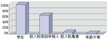消費(fèi)者根據(jù)文化程度和職業(yè)的不同,對(duì)IP電話的認(rèn)可也不一樣,其中,學(xué)生和年輕的上班族的認(rèn)知率是最高的,這和他們的收入以及較易接受新事物有關(guān)。學(xué)生的收入較低,年輕的上班族中不少人的收入不高,同時(shí)他們也是長(zhǎng)途電話的主要使用者之一。對(duì)于那些高收入的消費(fèi)者來(lái)說(shuō),IP電話所節(jié)省的費(fèi)用必要性不大,而很多話費(fèi)可以報(bào)銷,IP電話使用又不方便,因此他們一般不使用IP電話。而對(duì)于年齡較大的消費(fèi)者來(lái)說(shuō),IP電話的不方便使用是最主要的原因之一。圖5是個(gè)人消費(fèi)者對(duì)IP電話的使用程度比較。