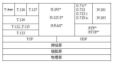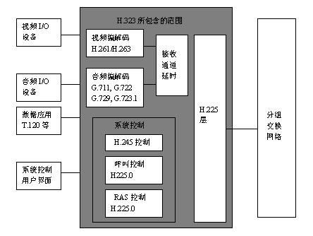 H.323是國(guó)際電信聯(lián)盟(ITU)的一個(gè)標(biāo)準(zhǔn)協(xié)議棧,該協(xié)議棧是一個(gè)有機(jī)的整體,根據(jù)功能可以將其分為四類協(xié)議,也就是說(shuō)該協(xié)議從系統(tǒng)的總體框架(H.323)、視頻編解碼(H.263)、音頻編解碼(H.723.1)、系統(tǒng)控制(H.245)、數(shù)據(jù)流的復(fù)用(H.225)等各方面作了比較祥細(xì)的規(guī)定。