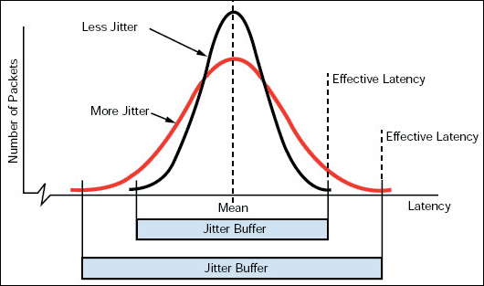 網(wǎng)絡上的抖動出現(xiàn)50到200毫秒的標準偏差并非罕見。相比之下,企業(yè)LAN卻很少出現(xiàn)超過幾毫秒的抖動。