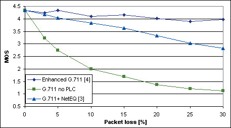 為了處理數(shù)據(jù)包丟失問題,VoIP和VoFi系統(tǒng)采用了名為數(shù)據(jù)包丟失隱藏(packet loss concealment)的一種技術。這種技術并不找回丟失的數(shù)據(jù)包,只是把丟失數(shù)據(jù)包對語音產(chǎn)生的不利影響掩蓋起來。讓人驚訝的是,這種方法的效果非常好:在某些情況下最多允許可以丟失30%的數(shù)據(jù)包