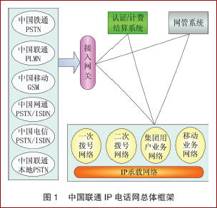 中國聯(lián)通IP電話網(wǎng)自1999年6月入運(yùn)營以來,經(jīng)過一期、二期和三期工的建設(shè),目前,網(wǎng)絡(luò)已覆蓋中國329個地市,E1端口規(guī)模超過1.8萬個,成為全球最的IP電話網(wǎng)絡(luò)。網(wǎng)絡(luò)的話務(wù)量已經(jīng)達(dá)到月近10億分鐘,已是世界上流量最大的電話網(wǎng)絡(luò)。中國聯(lián)通IP電話網(wǎng)總體框架圖1所示,包括IP承載網(wǎng)絡(luò)、業(yè)務(wù)網(wǎng)絡(luò)(包式括一次撥號業(yè)務(wù)網(wǎng)、二次撥號業(yè)務(wù)網(wǎng)、集團(tuán)用戶業(yè)務(wù)網(wǎng)和移動用戶業(yè)務(wù)網(wǎng))、IP電話網(wǎng)絡(luò)管理設(shè)備(如計(jì)費(fèi)結(jié)算系統(tǒng)、網(wǎng)管系統(tǒng)等)、與各類本地網(wǎng)絡(luò)連接的接入網(wǎng)關(guān)等部分。