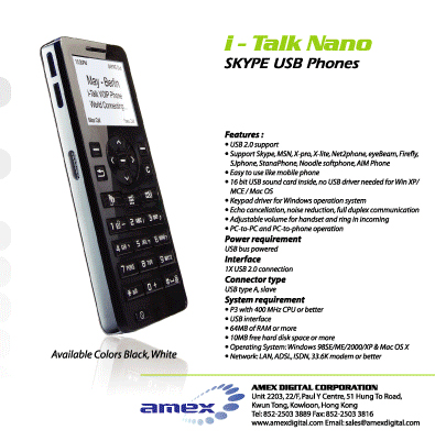 不要以為這就是傳聞中的iPhone,雖然它的風(fēng)格與Nano十分相似,其實這是由AMEX推出的VoIP電話,但官方看來有心借蘋果的氣勢,所以此VoIP電話名為 iTalk Nano。