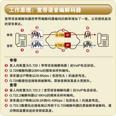 典型的人類(lèi)語(yǔ)音盡管由范圍很寬的頻率組成,但利用10KHz以上的頻率采樣就能很好地復(fù)制。不幸的是,大多數(shù)VoIP的編解碼器也只能捕獲這個(gè)頻譜范圍的一半。G.729語(yǔ)音編解碼器是VoIP系統(tǒng)中應(yīng)用最廣的編解碼器,它是采樣頻率范圍從200Hz至略小于4KHz的窄頻編解碼器。因此,典型人類(lèi)語(yǔ)音的大部分頻譜沒(méi)有被采集到。