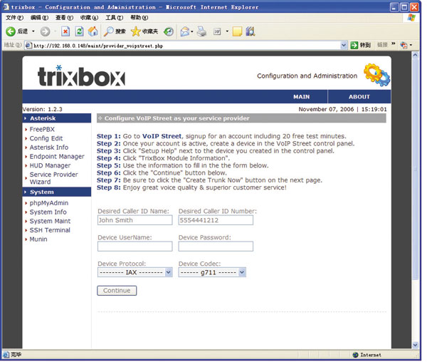 圖2 Trixbox的主頁面