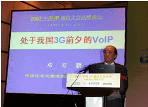 國(guó)務(wù)院發(fā)展研究中心局長(zhǎng)鄧壽鵬的發(fā)言“處于我國(guó)3G前夕的VoIP”正式拉開(kāi)了本次大會(huì)的序幕。鄧壽鵬局長(zhǎng)的發(fā)言詳細(xì)闡述了3G和VoIP在中國(guó)的發(fā)展現(xiàn)狀,客觀分析了這兩個(gè)新技術(shù)存在的不足以及未來(lái)將帶來(lái)的巨大生產(chǎn)力進(jìn)步和其中潛在的巨大商機(jī), 對(duì)運(yùn)營(yíng)商傳統(tǒng)通信方式的沖擊以及對(duì)其轉(zhuǎn)型為全業(yè)務(wù)服務(wù)提供商的推動(dòng)力。