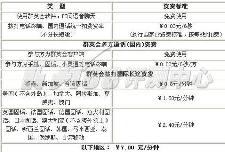 群英會(huì)計(jì)費(fèi)方式以秒為單位,撥打國(guó)內(nèi)電話為0.03元/秒。支付方式為通過網(wǎng)絡(luò)購(gòu)買充值卡進(jìn)行充值。