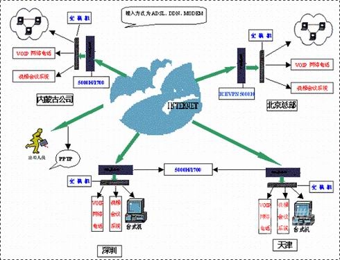 按照西貝公司的要求,ICEFLOW采用FUNCTION口將其普通辦公區(qū)和重要區(qū)域(如財務(wù)區(qū))分離開來,進(jìn)一步保障關(guān)鍵數(shù)據(jù)傳輸?shù)陌踩,采用VOIP電話,將為公司節(jié)約大量電話費用。