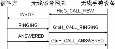 當(dāng)用戶(hù)通過(guò)無(wú)線(xiàn)手持設(shè)備撥打一個(gè)號(hào)碼時(shí),無(wú)線(xiàn)手持設(shè)備將發(fā)送一個(gè)HtoG_CALL_ NEW的內(nèi)部會(huì)話(huà)信令連同呼叫的號(hào)碼給無(wú)線(xiàn)語(yǔ)音網(wǎng)關(guān),無(wú)線(xiàn)語(yǔ)音網(wǎng)關(guān)收到該信令后,將根據(jù)該信令構(gòu)造相應(yīng)的SIP消息并發(fā)送到外部網(wǎng)絡(luò)。當(dāng)無(wú)線(xiàn)語(yǔ)音網(wǎng)關(guān)收到來(lái)自被叫方表示振鈴信息的暫時(shí)應(yīng)答RINGING時(shí),將發(fā)送一個(gè)GtoH_CALL_RINGING的內(nèi)部會(huì)話(huà)信令給手持設(shè)備。當(dāng)無(wú)線(xiàn)語(yǔ)音網(wǎng)關(guān)收到來(lái)自被叫方表示應(yīng)答的信息ANSWERED時(shí),語(yǔ)音網(wǎng)關(guān)將啟動(dòng)RTP線(xiàn)程并發(fā)送一個(gè)GtoH_CALL_ANSWERED的內(nèi)部會(huì)話(huà)信令給手持設(shè)備以通知被叫方已應(yīng)答。此時(shí)手持設(shè)備開(kāi)啟語(yǔ)音進(jìn)程,與被叫方實(shí)現(xiàn)通話(huà)。