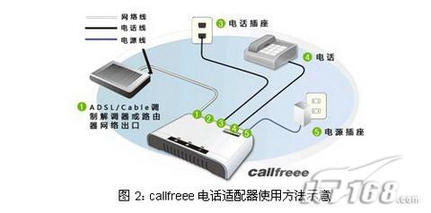 這不僅僅意味著用戶不需要高價購買設(shè)備,不需要支付任何的月租費(fèi),更重要的是用戶不需要擔(dān)心設(shè)備廠商服務(wù)質(zhì)量下降甚至中斷設(shè)備的使用。而且callfreee電話適配器配置完成以后使用方式非常簡單,用戶不需要更換電話機(jī)、變更電話號碼和和撥號方式,使用方法如下圖所示: