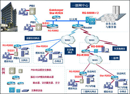 1、不改變原有網(wǎng)絡構(gòu)架,通過增加銳捷26系列路由器就可以直接把用戶PSTN系統(tǒng)接入IP網(wǎng)絡,輕松實現(xiàn)VOIP應用的擴展接入。