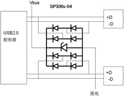 圖8 USB端口保護器件SP300x
