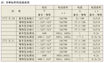 K.20/K.21(國際電信聯(lián)盟)和中國的YD/T993、950標準。不同的標準要求保護器件、技術(shù)和拓撲具有不同的穩(wěn)定性狀態(tài)。通過比較我們發(fā)現(xiàn),符合美國標準的保護器的抵御能力要比符合國際電信聯(lián)盟標準的高,更比符合中國標準的為高。在大部分情況下,符合美國標準的保護解決方案基本上都能通過ITU-T