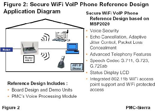 圖2:PMC-Sierra具備安全特性的VoIP Wi-Fi電話應(yīng)用原理圖