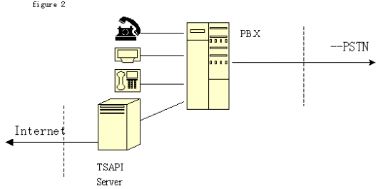 2、TSAPI技術(shù)標(biāo)準(zhǔn):由Novell公司開發(fā)。它將程控交換機(jī)或中央電話系統(tǒng)與Netware網(wǎng)絡(luò)集成在一起。可以實(shí)現(xiàn)呼叫轉(zhuǎn)移,交互式語(yǔ)音(IVR)和自動(dòng)呼叫分配(ACD)等功能。支持包括Windows各種版本、OS/2和Unix等目前主要操作系統(tǒng)。不同于TAPI ,TSAPI在計(jì)算機(jī)和桌面之間建立一個(gè)邏輯的連接,通過(guò)這些連接在任一端的TSAPI應(yīng)用就可以完成呼叫控制。由于TSAPI主要為Netware網(wǎng)操作系統(tǒng)增加電話服務(wù),不在每個(gè)電話和PC之間建立直接的連接,而是由一個(gè)電話服務(wù)器Netware可加載模塊(NLM)、一個(gè)電話服務(wù)器API(TSAPI)、一個(gè)電話服務(wù)器庫(kù)和一個(gè)電話客戶庫(kù)組組成在服務(wù)器電話系統(tǒng)間建立的連接,因此這個(gè)連接也稱為PBX-To-Server連接。電話服務(wù)器 NLM是負(fù)責(zé) PBX和 Netware服務(wù)器間傳送信息的。電話服務(wù)器 API是為運(yùn)行于服務(wù)器上的應(yīng)用提供電話服務(wù)器API。三方連接在客戶--服務(wù)器組網(wǎng)中比單方連接有更大的靈活性。網(wǎng)上的每個(gè)用戶都可迅速地通過(guò)現(xiàn)有的LAN基礎(chǔ)結(jié)構(gòu)撥入PBX。對(duì)其他服務(wù)的接入,如主機(jī)或終端仿真、傳真、E-mail等,都可以通過(guò)CTI接口獲得,只要這些業(yè)務(wù)已經(jīng)存在于網(wǎng)上。結(jié)構(gòu)如圖:
