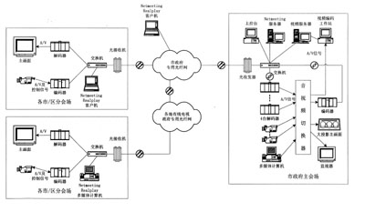 組成設(shè)備主會場的主要配置包括:編、解碼器各一套;主控臺;調(diào)音臺;視頻陣列器;畫面合成器;電動(dòng)調(diào)焦攝像機(jī)及控制器各一臺。