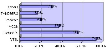 至于終端的品牌,賽迪顧問(wèn)在對(duì)用戶(hù)、渠道經(jīng)銷(xiāo)商的調(diào)查中,發(fā)現(xiàn)有一半以上的被調(diào)查者知道VTEL和PictureTel,另外一個(gè)比較知名的品牌是VCON,如圖3所示。