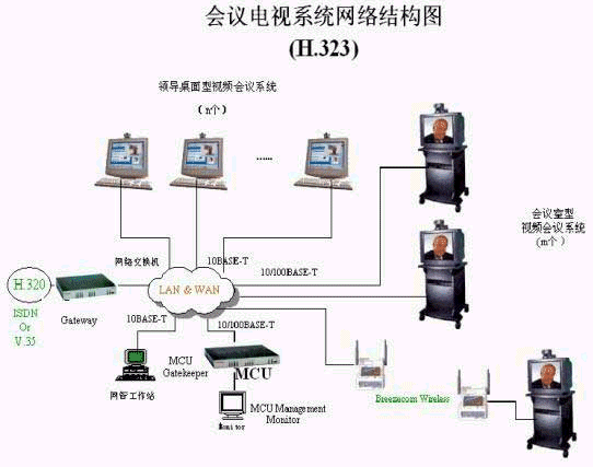 因此,對于會議電視系統(tǒng)的建設(shè),我們推薦采用H.323方案。方案的總體結(jié)構(gòu)如下: